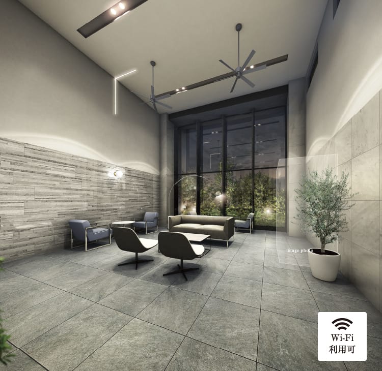 174戸の住まいにふさわしく、共用施設の充実ぶりは目をみはるほど。