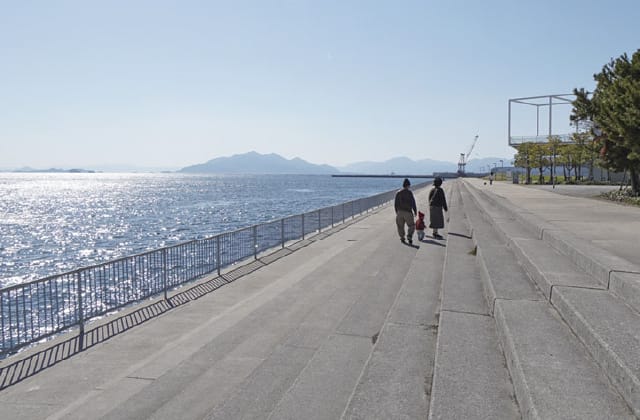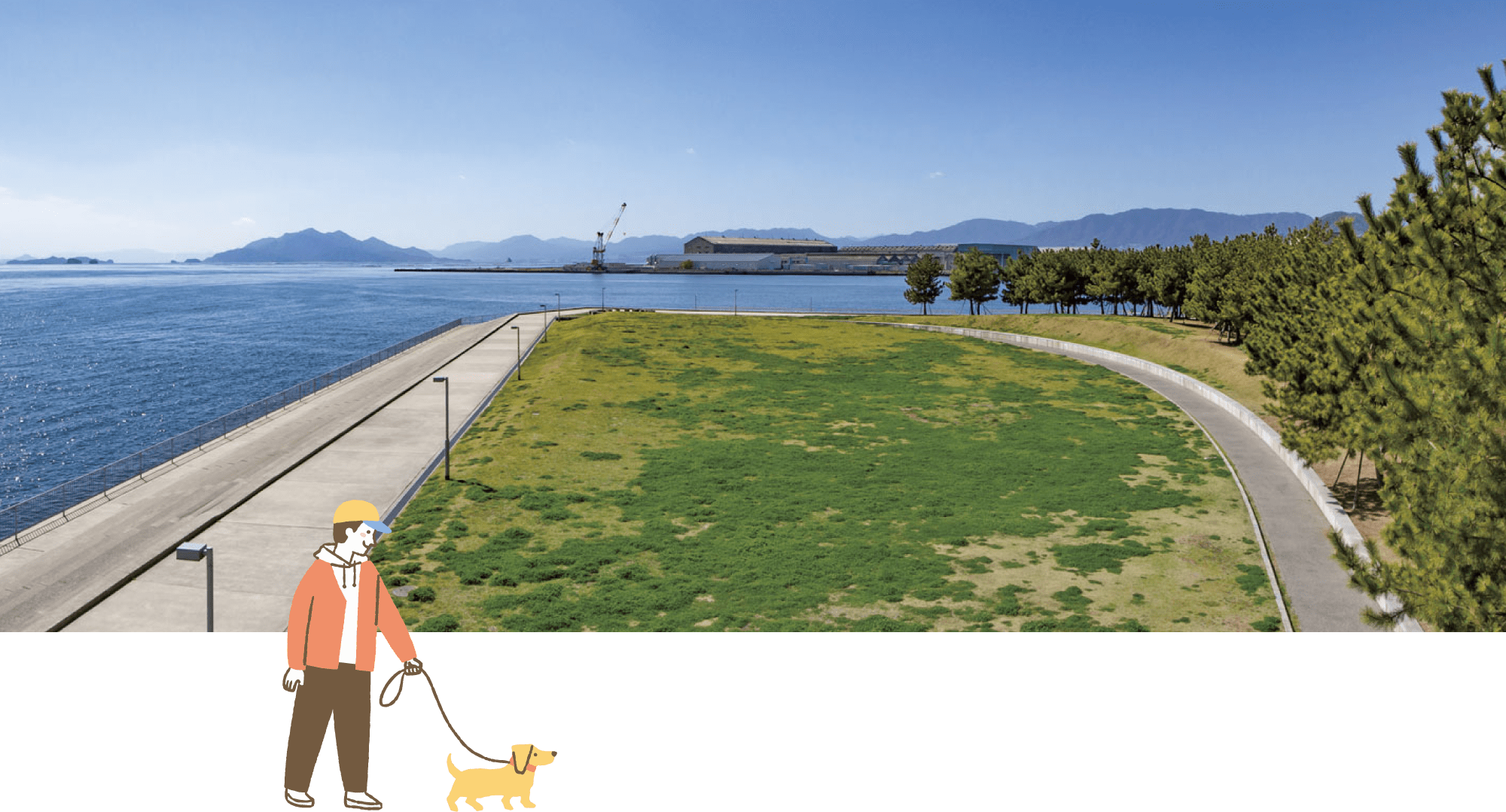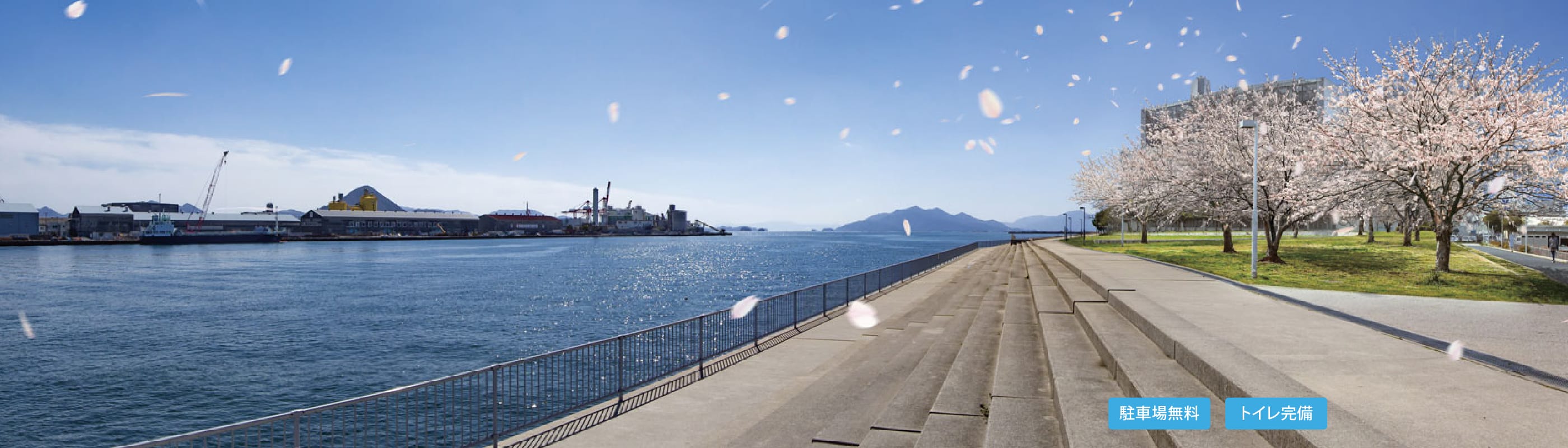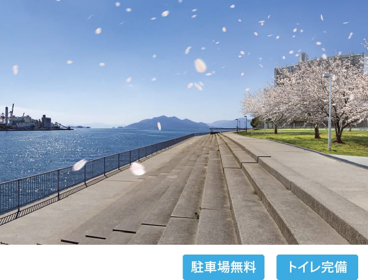 開放感あふれ、桜も咲く「吉島釣り公園」は、美しい瀬戸内の景色を満喫できます。