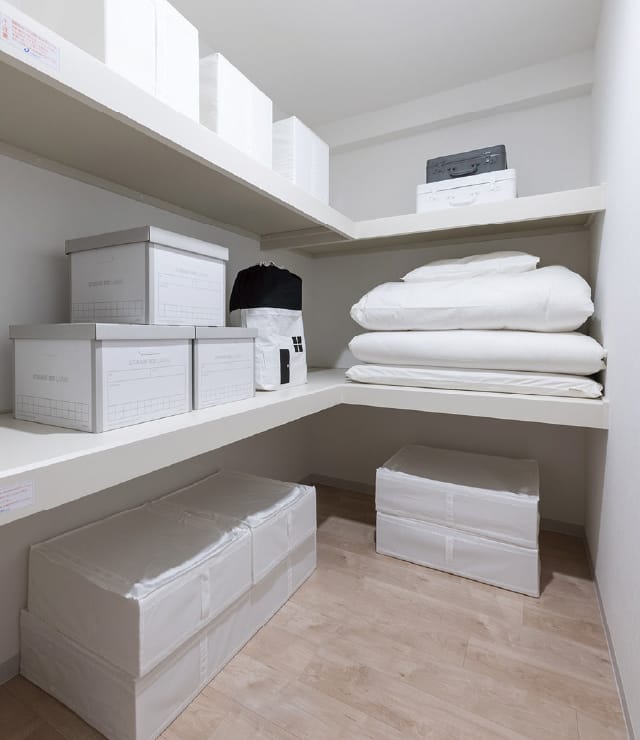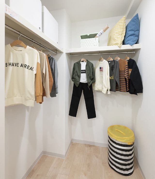 ワードローブから生活グッズや季節用品まで、効率よくしまうことができます。収納スペースに余裕があれば、室内はいつもすっきり広々。より広く、快適に住まうことができます。